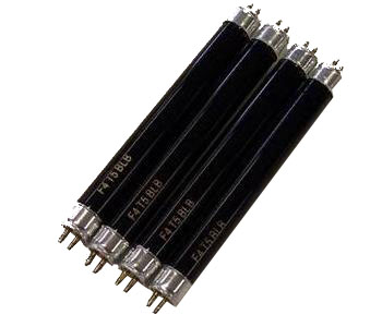 Black light is light that emits a dark purplish colour from a black UV globe.
