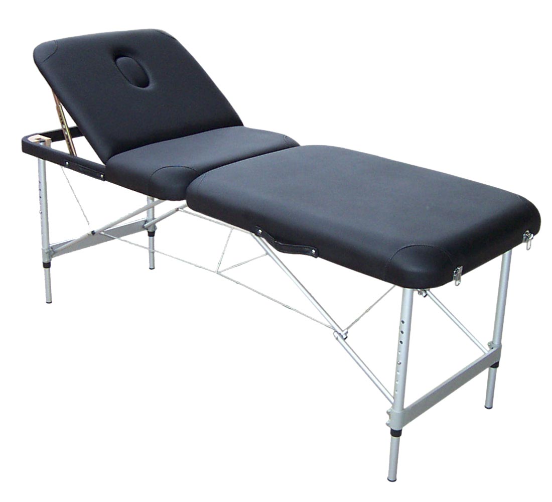 Features: 2 sections, Face hole, head rest, armrest and table is covered by vinyl with 5 cm of foam. Height adjustable aluminium legs (8 settings). Table weighs only 12.5 kg. Max weight supported is 220 kg. Includes black carry bag.
